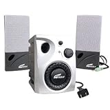 Time for a new set of computer speakers? This Eagle ET-SP2110-BK 3-piece speaker set delivers clear, clean sound and powerful deep bass response so your music and games come to life! Its classic black and silver color scheme will add a touch of elegance to your desktop.The subwoofer features a volume control knob so you can easily adjust the volume level or use the headphone in jack for private listening sessions. There's no need to spend a fortune on a good set of computer speakers when you can order this affordable Eagle ET-SP2110-BK 2.1 channel speaker set! Read more